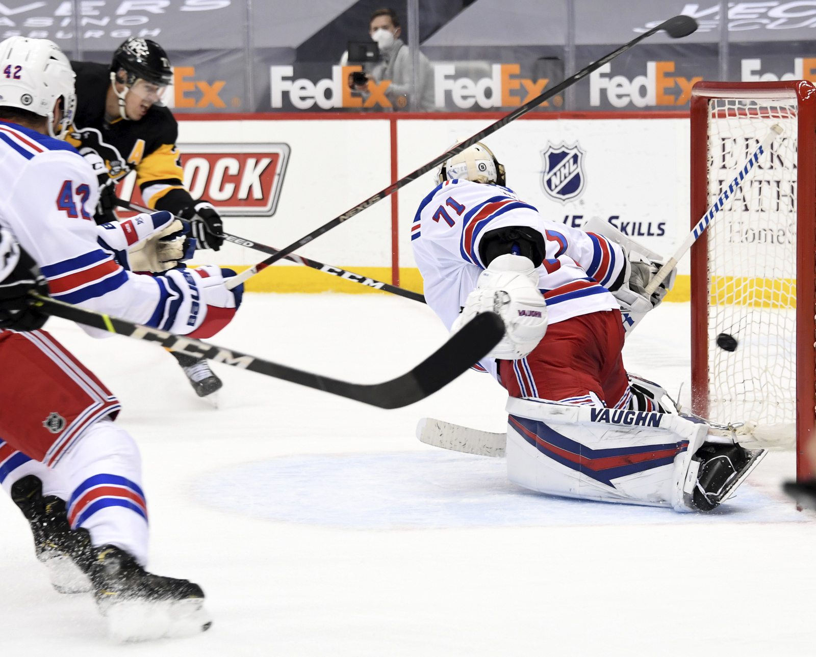 19 May 2001: Johan Hedberg #1 of the Pittsburgh Penguins looks on after letting by a New Jersey Devils goal during the second period of game 4 of the Eastern Conference Finals at Mellon Arena in Pittsburgh, Pennsylvania. Digital Image. Mandatory Credit: Jamie Squire/ALLSPORT